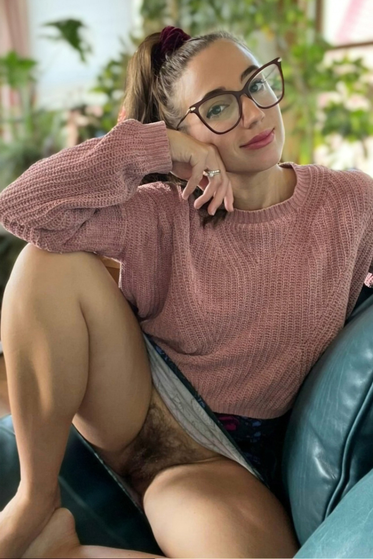 Hairy pussy mature glasses upskirt