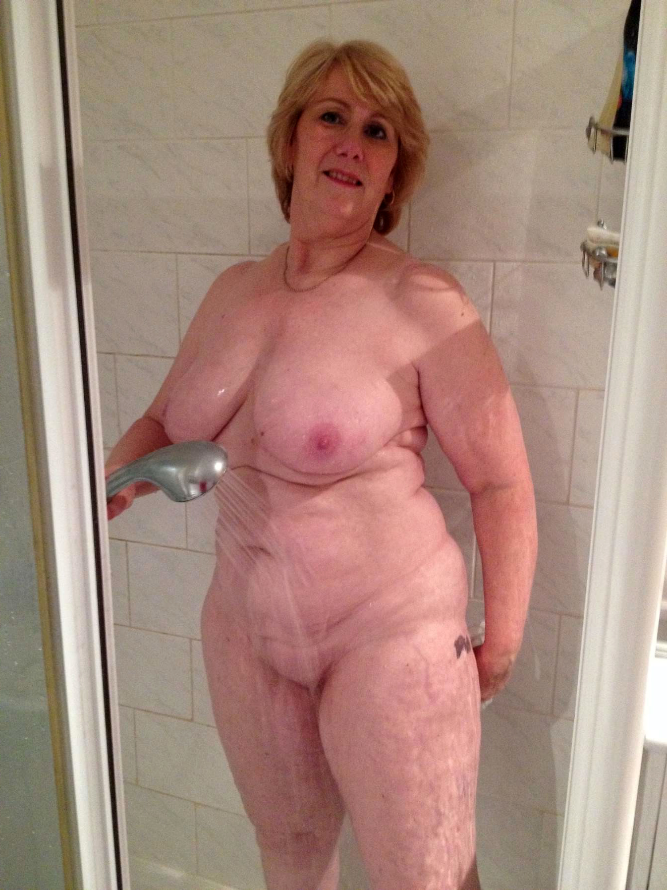 Hot shower fat mature
