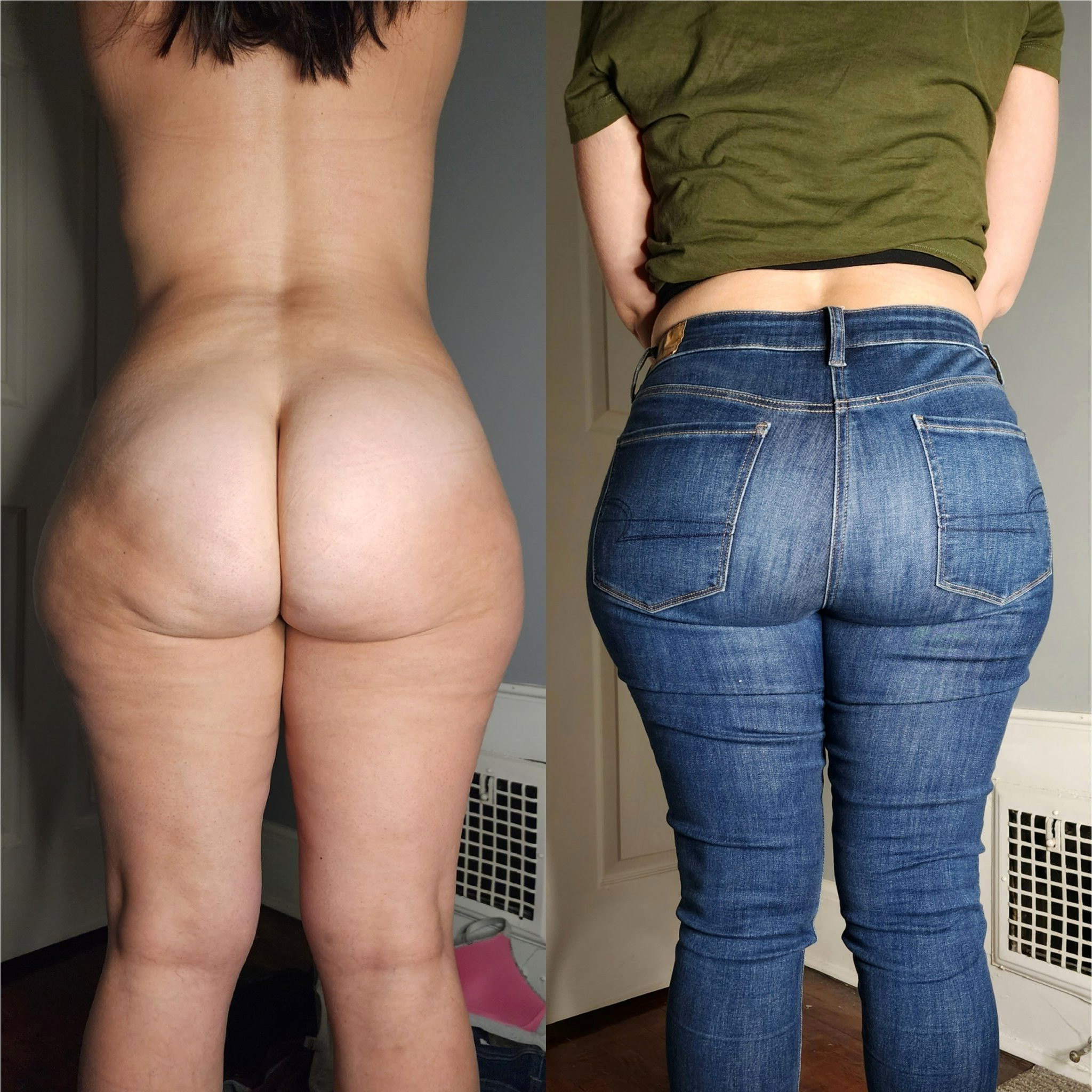Mature ass in jeans dressed undressed