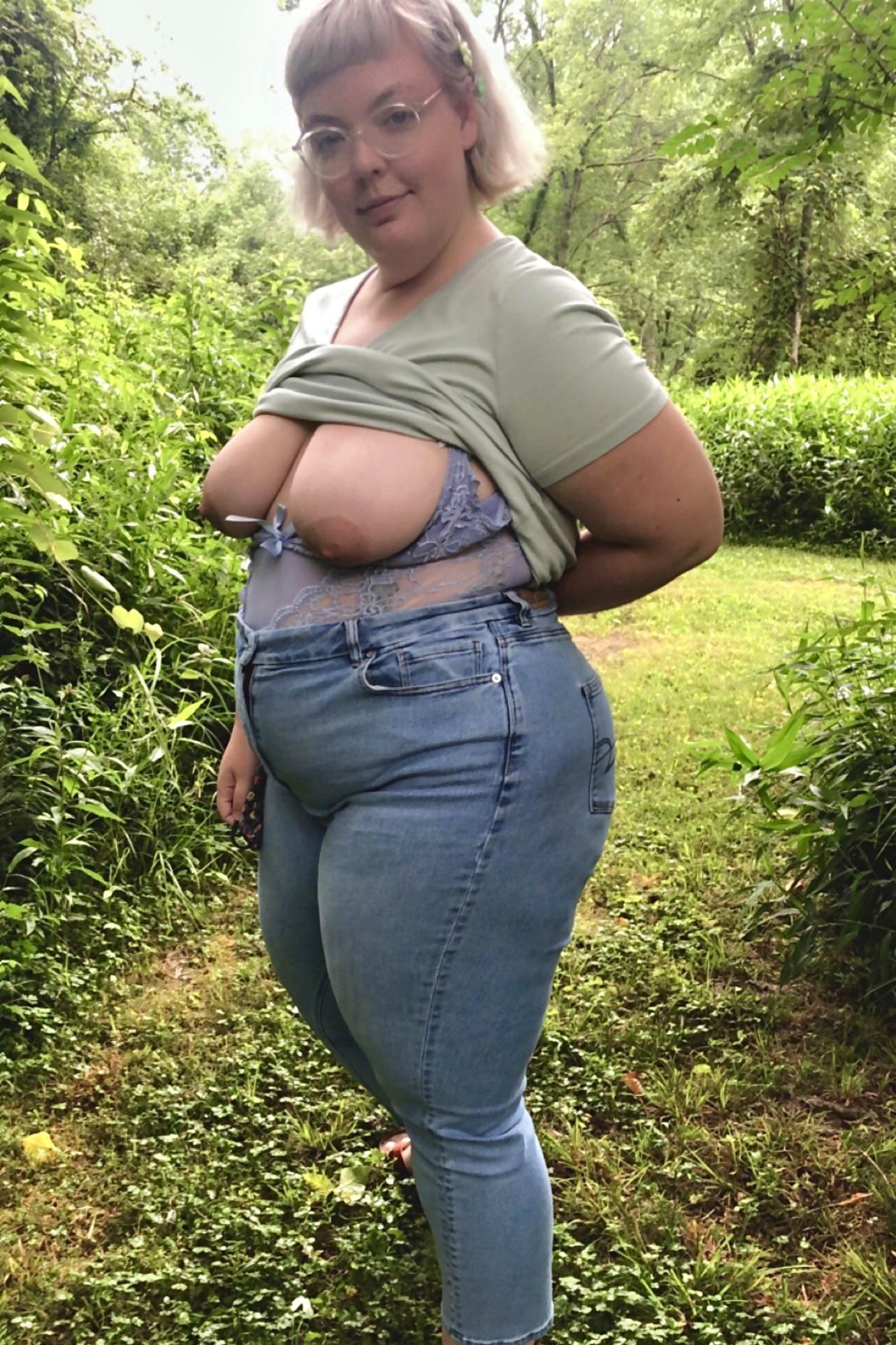 Nude matures in jeans in public