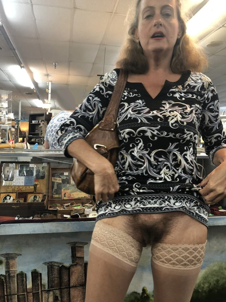 Very hairy mature lady upskirt her pussy